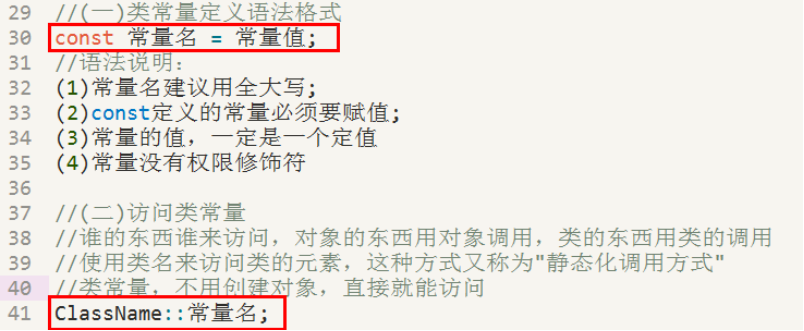 - 使用const定义类的常量(局部常量),define()定义常量是全局常量。