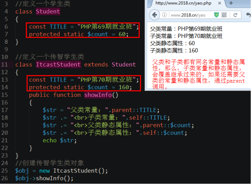 self和parent都使用范围解析符“::”来调用其他内容