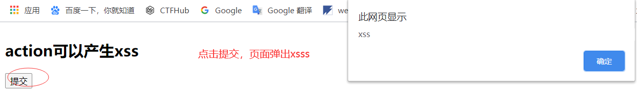 <form action="javascript:alert('xss')"> <input type="submit" value="提交"> </form>
