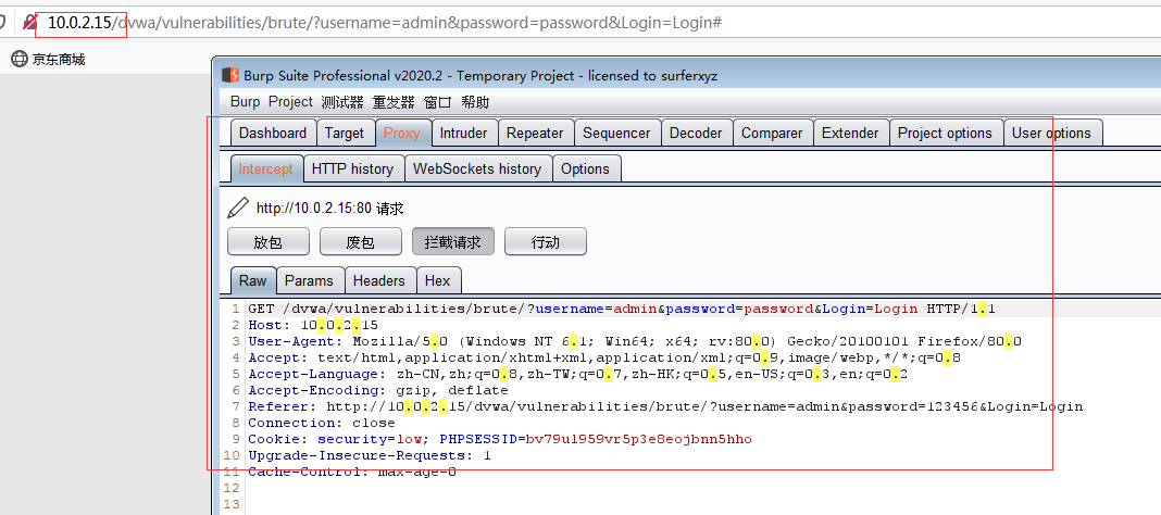 3.使用本机ip访问dvwa,即可进行抓包
