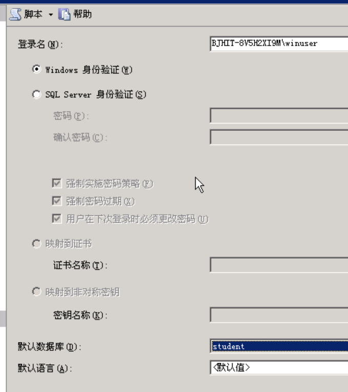 (2)使用SQL Server Management Studio管理SQL Server身份验证的登录帐号。