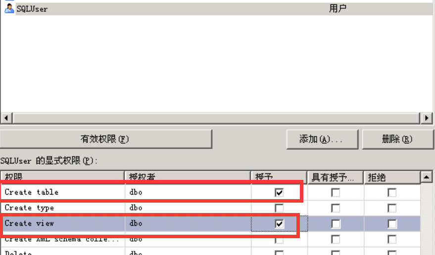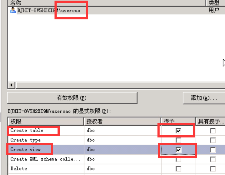 这样的结果是,授予用户WinUser可以在数据库student中创建视图和表。授予用户SQLUser可以在数据库student中进行除创建视图和表以外的所有操作。