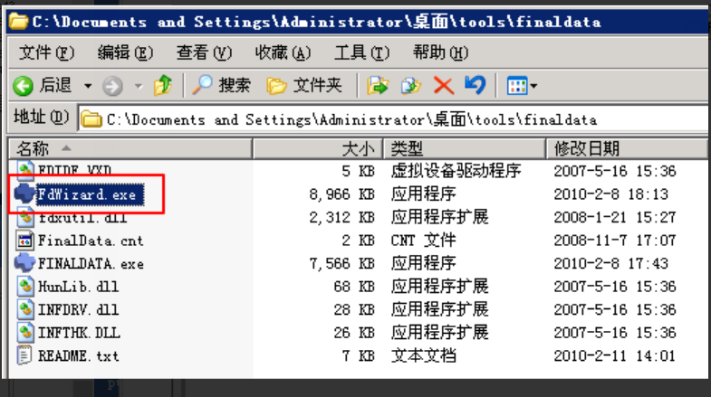 1、打开桌面上tools\finaldata文件夹,找到应用程序“FdWizard”