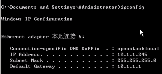 1、远程桌面方式登录到CA服务器,在CMD下查看本机IP地址: