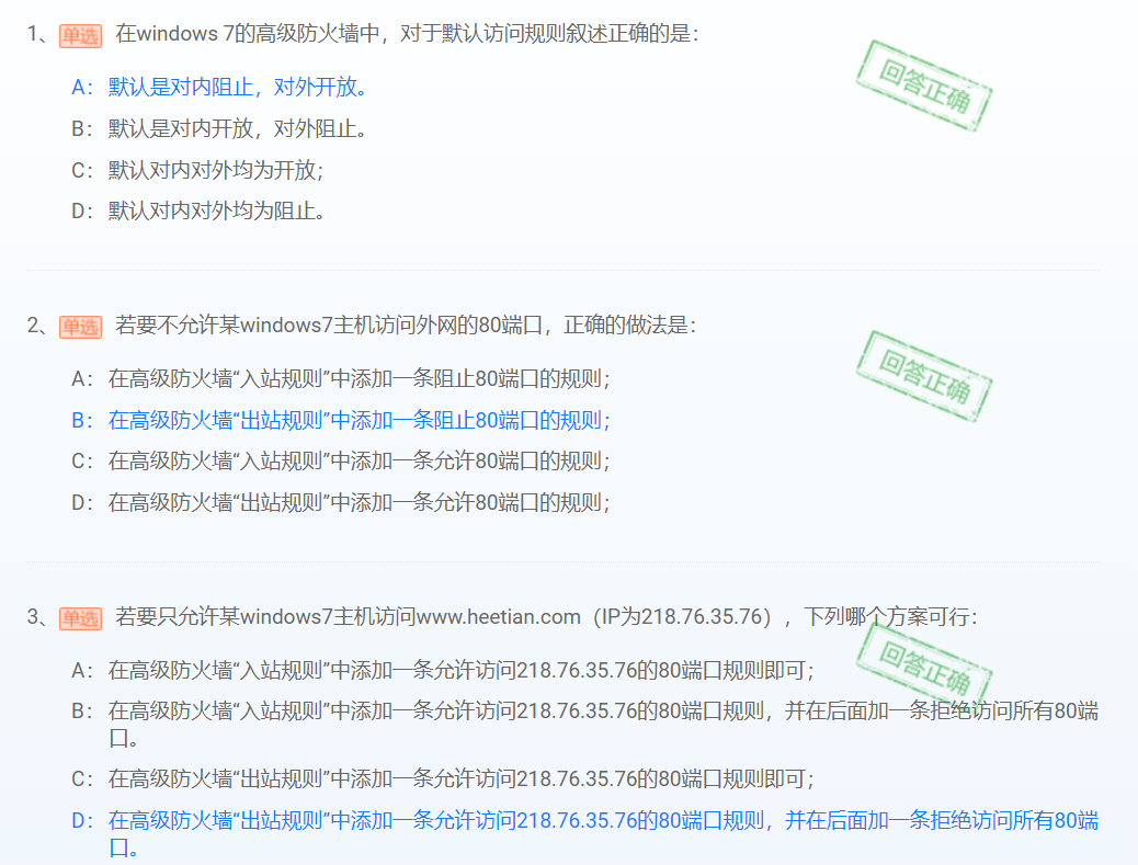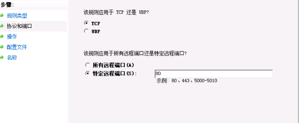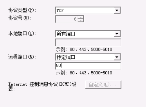 设置出口规则为“阻止对80端口的TCP连接”(即禁止访问Web服务器)