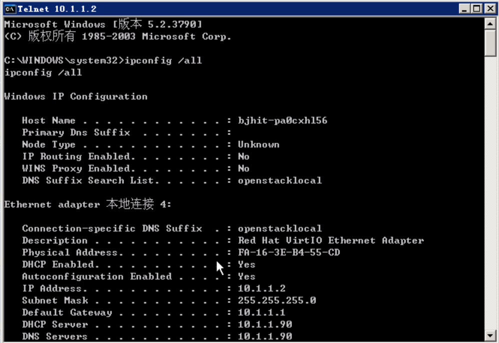 输入ipconfig /all 命令查看目标主机信息,看是否拿到目标主机shell