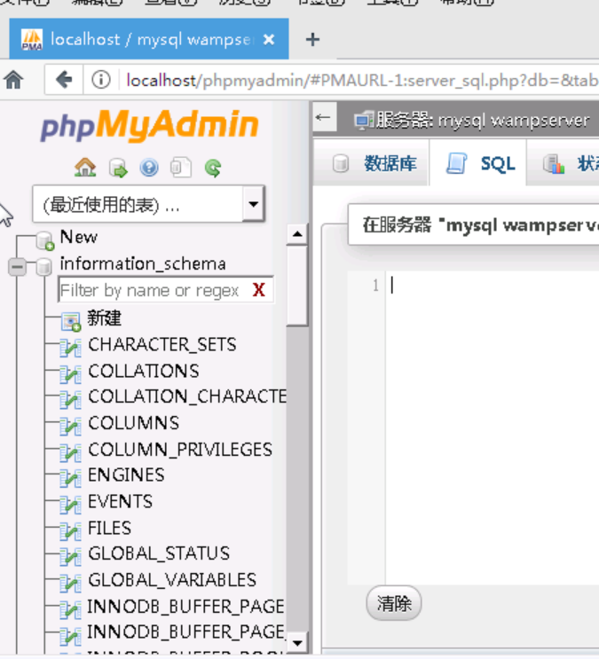 在phpmyadmin中,在左侧点击information_schema数据库。