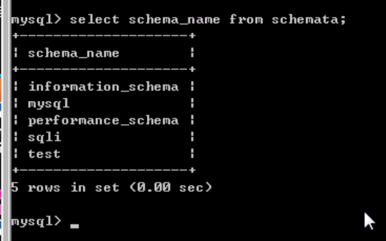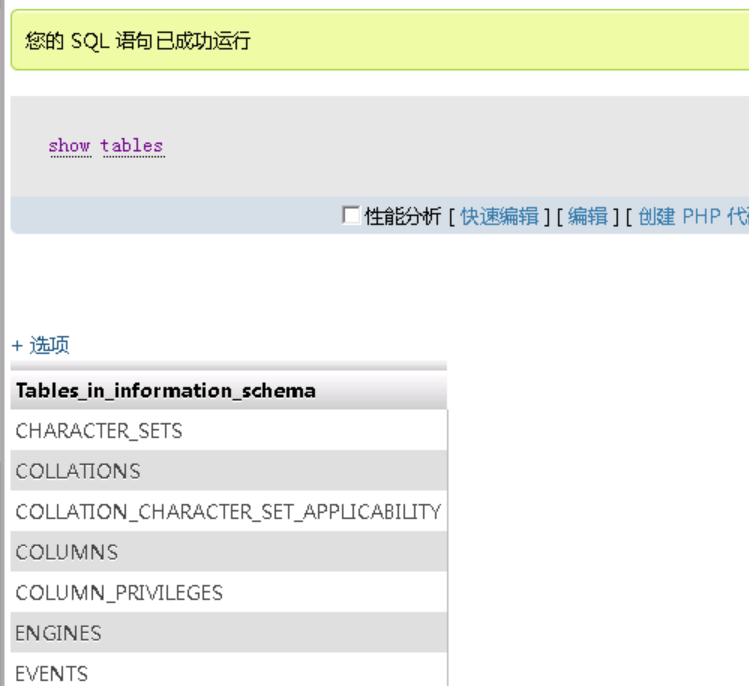 需要注意的是,要在information_schema这个数据库中执行该SQL语句。如何进入information_schema数据库执行SQL语句,请参考前面进入sqli数据库执行SQL语句的步骤。