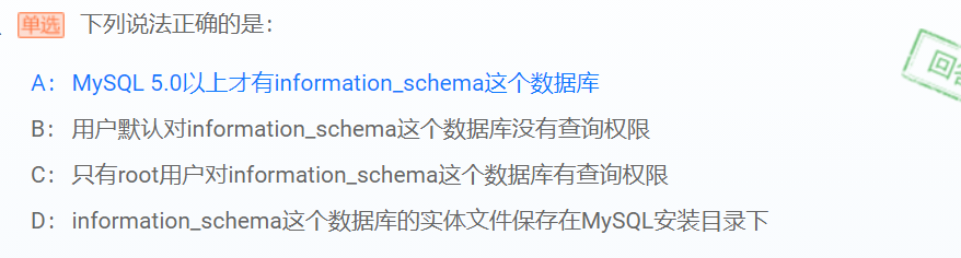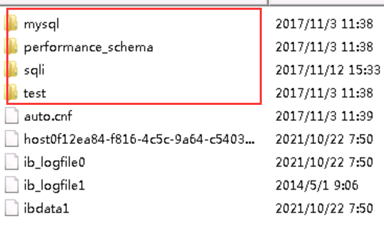 每一个目录对应数据库中的一个数据库,在数据库中执行show databases;的时候,可以看到存在5个数据库,正是少了information_schema这个数据库。