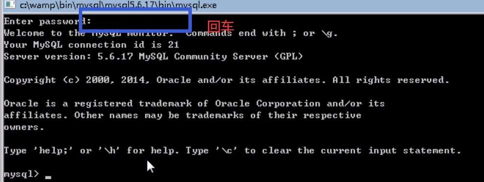 弹出一个命令行窗口,这就是mysql客户端,此时要求输入密码,由于root的密码为空,直接回车即可