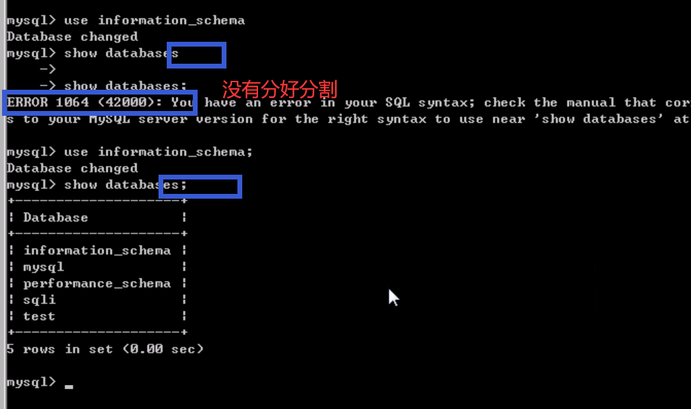 进入information_schema 数据库,命令为:use information_schema; 。一定要注意后面记得加分号,分号表示一个语句结束,如果没有检测到你输入分号,它会认为你一个语句还没结束,直到碰到分号后,才开始执行语句