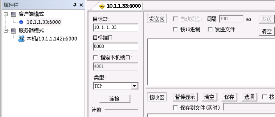 选择10.1.1.142的机器,双击桌面的" TCP&UDP测试工具",右键点击客户端模式,在下拉列表中,选择"创建连接",