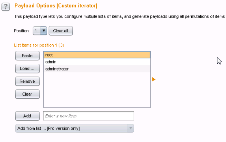 10、切换到payloads选项卡下,设置payload type,在add处添加用户名,separator for position1 处添加一个冒号