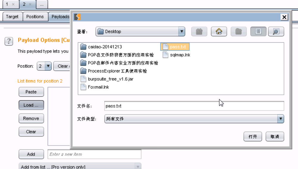 11、加载桌面上一个密码字典pass.txt,配置如下