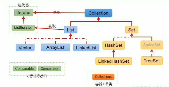 Collection接口继承java.lang.Iterator接口,此接口有一个iterator()方法,name所有实现Collection接口的集合类都有一个iterator()方法,用以返回一个实现Iterator接口的对象