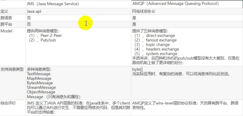 AMQP是协议,而JMS是一个接口规范,只适用于java平台