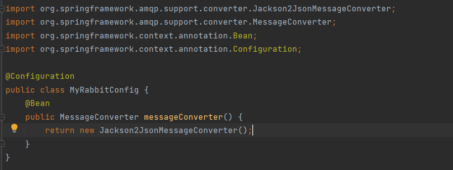 (3)监听消息:使用@RabbitListener,同时要在配置类上标注@EnableRabbit