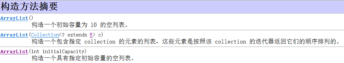 ArrayList的构造方法: