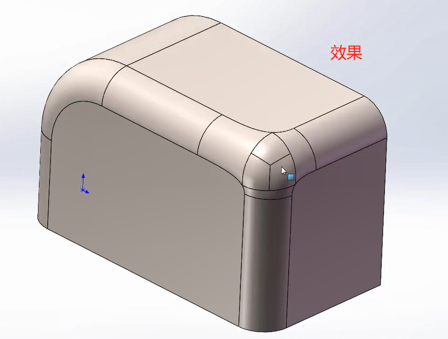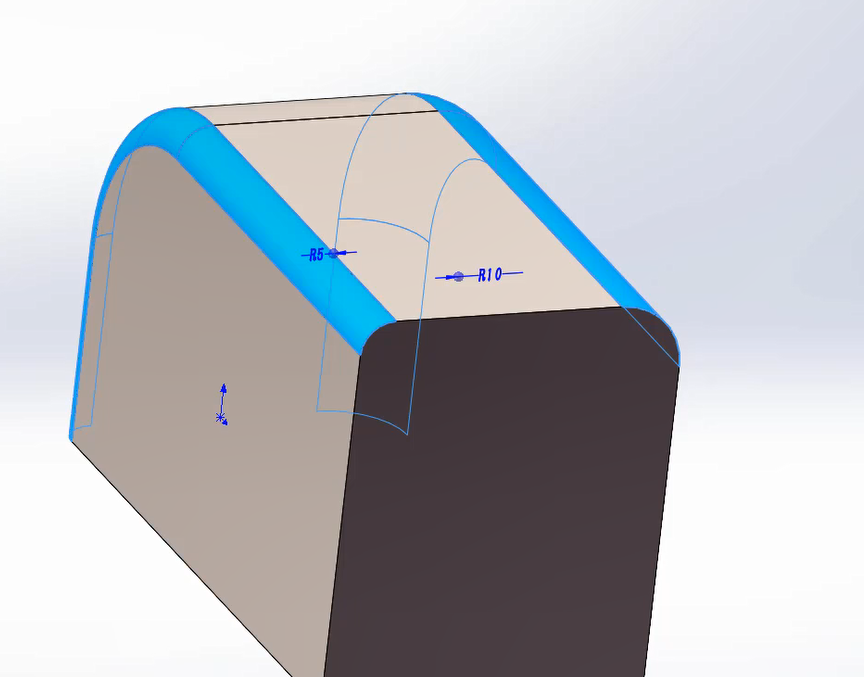 1)在添加小圆角之前添加较大圆角。当有多个圆角会聚于一个顶点时,先生成较大的圆角: