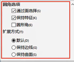C.保持曲面:使用相邻曲面来剪裁圆角。因此,圆角边线是连续而且光滑的,但是相邻边线会受到影响;