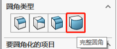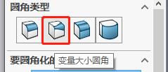 3.在手工模式下圆角共包含四种类型:恒定大小圆角、变量大小圆角、面圆角、完整圆角。其中,在不同的圆角类型下内容又会有很大的区别.