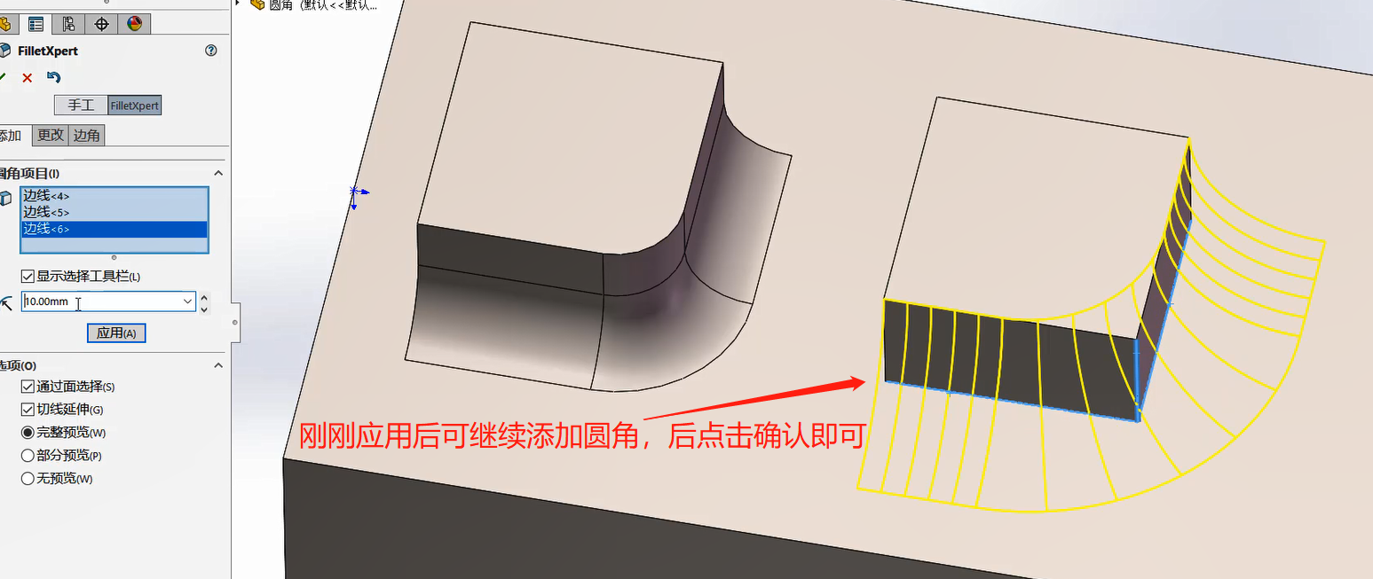 五、FilletXpert(圆角专家):管理、组织和重新排序对称等半径 圆角;