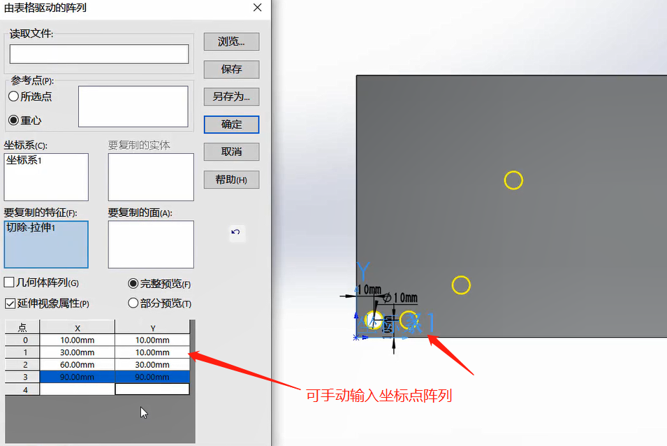 3.手动输入坐标点阵列
