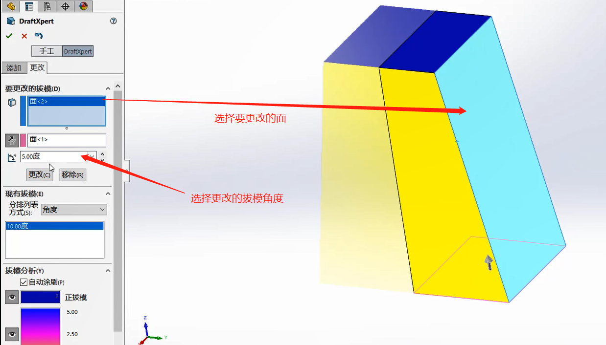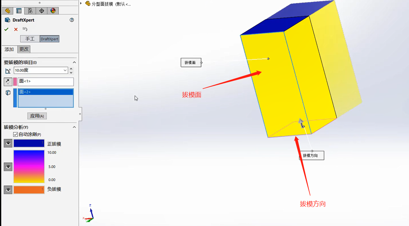 2.拔模的两种模式:手工和Draft Xpert(拔模专家)