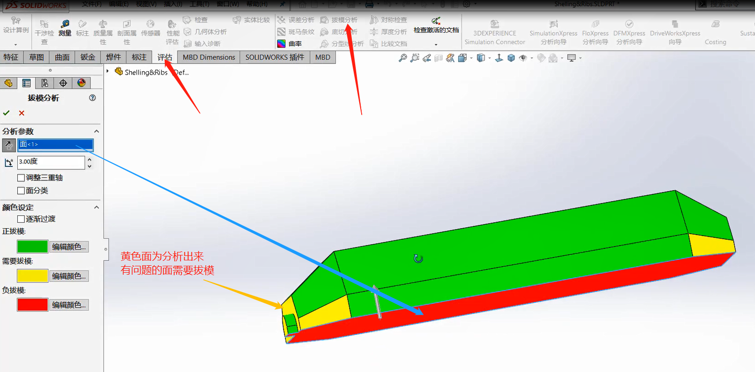 内部的面 将所有从中性面拉伸的内部面进行拔模 外部的面,将所有在中性面旁边的外部面进行拔模