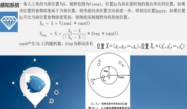 人工鱼群算法就是根据鱼群的感知系统、参数系统、行为系统,通过构造人工鱼来模仿鱼群的觅食、聚群及追尾行为,从而实现全局寻优。 - 感知系统