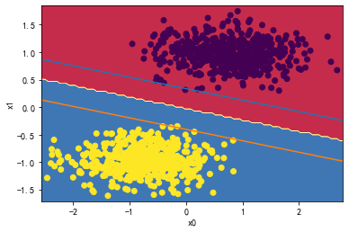 # x1 = -w0/w1*x0 - (b+1)/w1