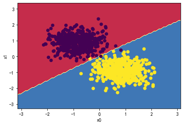#w0*x0 + w1*x1 +b =0