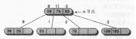 2、若父节点中存有2个数据项,则必有3个子节点。