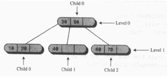////////////////////////////////////////////////////////////////插入数据10,20,30,40,50,60,70后形成的2-3-4树为