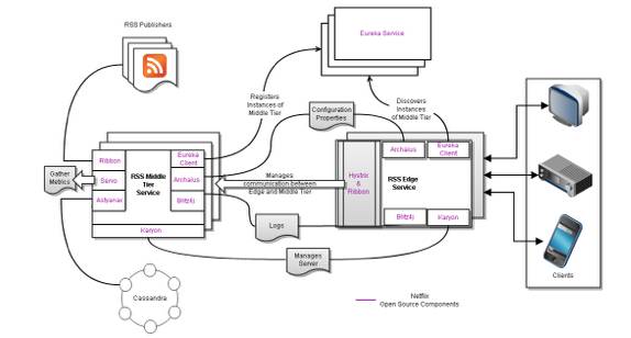 下图11展示了基于这些组件构建的一个微服务框架体系,来自recipes-rss。