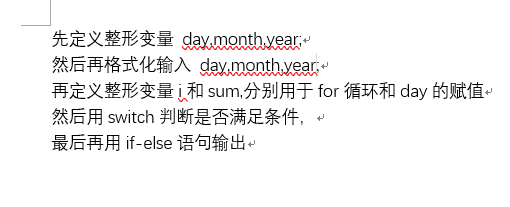-数据表达:使用了整形变量 day,month,year;分别表示日,月,年。