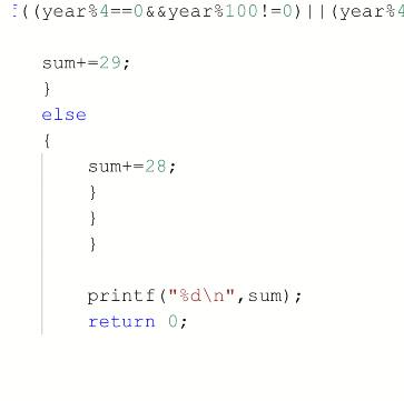 1编译错误:刚开始在sum=day时,输成了sun==day。又犯了老毛病,分不清赋值与比较