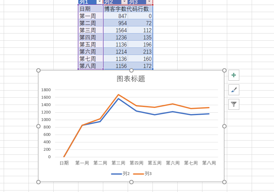 3.2 累积代码行和博客字数
