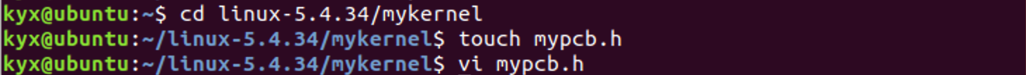 由于mykernel-2.0_for_linux-5.4.34.patch文件,我放在桌面上。patch -p1 < /home/kyx/Desktop/mykernel-2.0_for_linux-5.4.34.patch