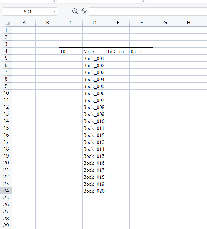 import pandas as pd from datetime import date,timedelta //导入时间 books=pd.read_excel('E:/PycharmProjects/pythonProject/Hellopython/Books.xlsx',usecols="C:F",skiprows=3,dtype={'ID':str,'InStore':str,'Date':str}) start=date(2018,1,1) for i in books.index: books['ID'].at[i]=i+1 books['InStore'].at[i]='Yes' if i%2==0 else 'No' books['Date'].at[i]=start+timedelta(days=i)//timedelta中只有days没有年月 print(books)