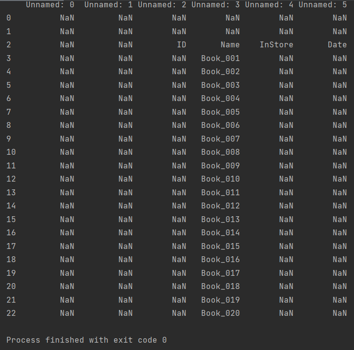 import pandas as pd books=pd.read_excel('E:/PycharmProjects/pythonProject/Hellopython/Books.xlsx') print(books)
