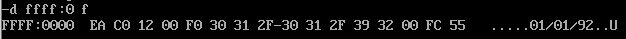 生产日期在内存FFFF0H~FFFFFH的单元内,如图可以看出,这是92年01月01日生产的ROM