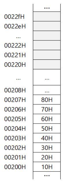 已知内存单元00201H ~ 00207H分别存放数据(如下图所示),00220H ~ 0022fH用作栈空间。