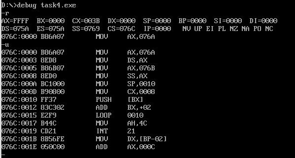 对程序task1_4.asm进行汇编、连接,用debug加载、跟踪调试,基于结果,回答问题。