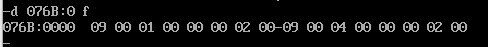 ② 在debug中加载程序,反汇编,执行到line13退出前,用d命令查看data段对应的内存空间,确认每 行第一个单词已经由大写->小写。