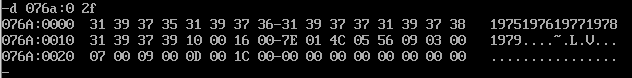 ② 汇编、连接后,在debug中加载、调试程序。灵活、合理使用u命令、g命令、d命令,显示刚开始逻辑段table的数据信息,以及,结构化存入数据后,数据段table的数据信息,确认实现题目要求。