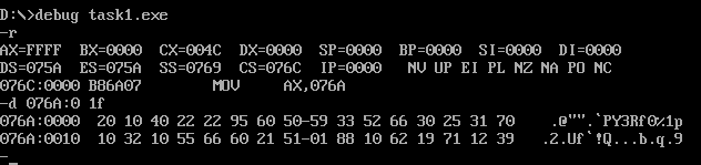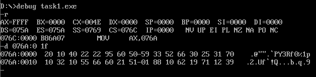 对程序进行汇编、链接,得到可执行程序task1.exe。在debug中调试程序,并回答问题。