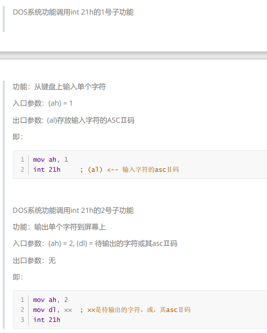 说明:task2.asm中用到的两个DOS系统功能调用: