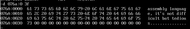 1 data segment 2 str db "assembly language, it's not difficult but tedious" 3 len equ $ - str 4 data ends