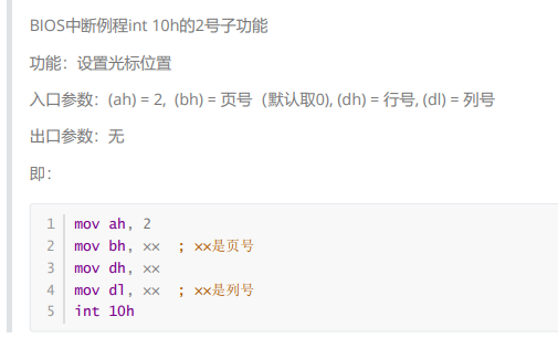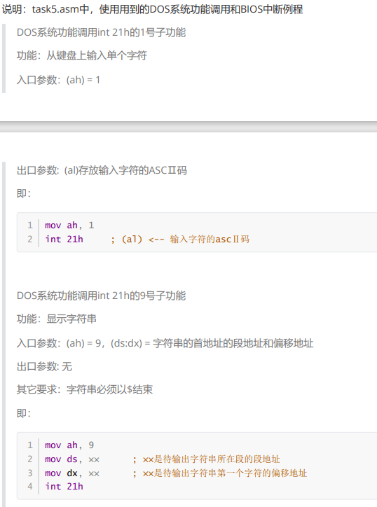 说明:task5.asm中,使用用到的DOS系统功能调用和BIOS中断例程
